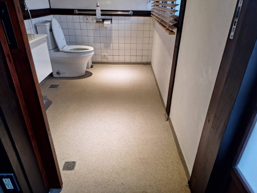 選擇這樣規格,就是期望園區的戶外景觀不僅要能經得起風吹雨打,更要能承受時間的考驗——這樣的高品質與細膩溫潤的質地,與這已歷百年的新東舊時光日式老屋,可謂是結合得天衣無縫。