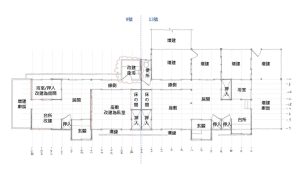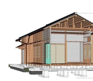 屋身外部為 #簓子下見,內部為 #小舞壁(即 #編竹夾泥牆) 。簓子下見配合雨淋板角度作痕刻,使之與雨淋板密接,增加防雨作用;建具的部分,原有之襖、障子門、舞良戶、出窗及欄間保存完整。 地坪的部分,於原有地坪上方因使用需……